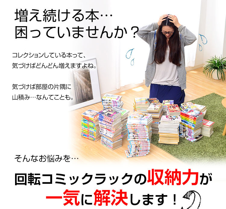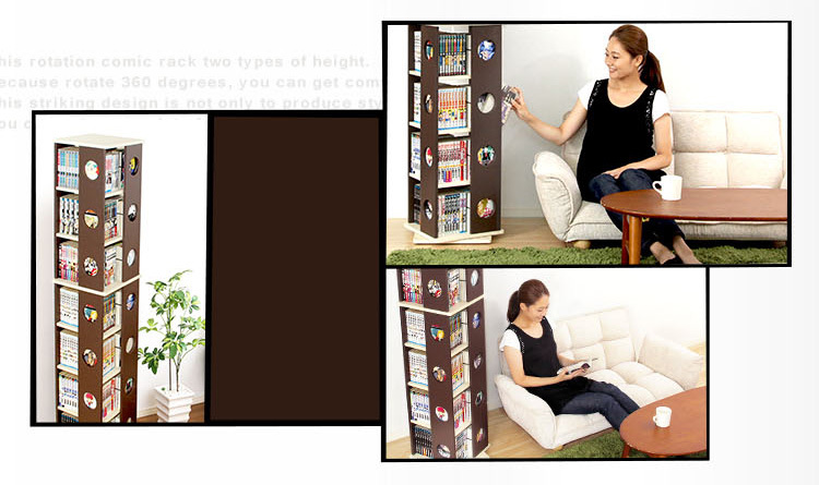 ホームテイスト 回転式の本棚!回転コミックラック(7段タイプ本棚 回転 コミック)