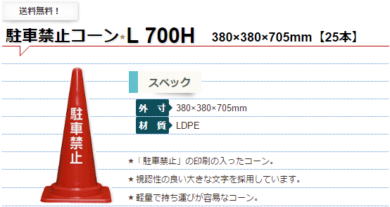 サンコー 駐車禁止コーン L 700H 赤 0.66kg 25本 三甲 カラーコーン パイロン