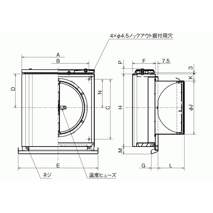 | 形 名 | 適用パイプ | A | B | C | D | E | F | G | H | J | K | L | M | N | P |