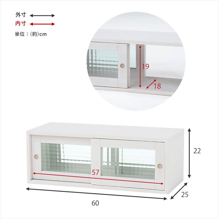 商品説明・■ 扉内内寸:(約)幅57×奥行18×高さ19cm