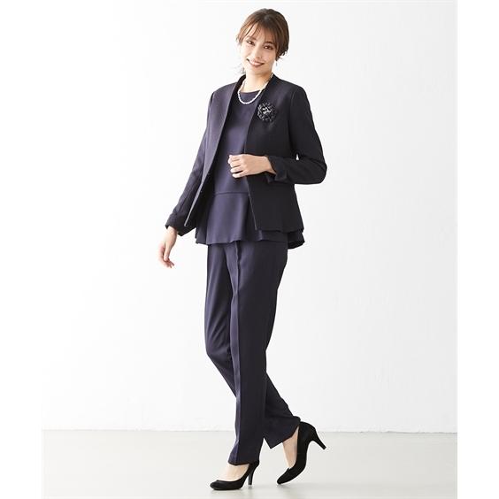 フォーマル 3点セット トールサイズ レディース 入学式 卒業式 ノーカラー ツイード調 ジャケット + ブラウス + パンツ コサージュ付 M/L ニッセン nissen