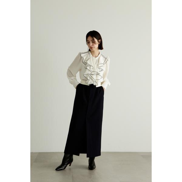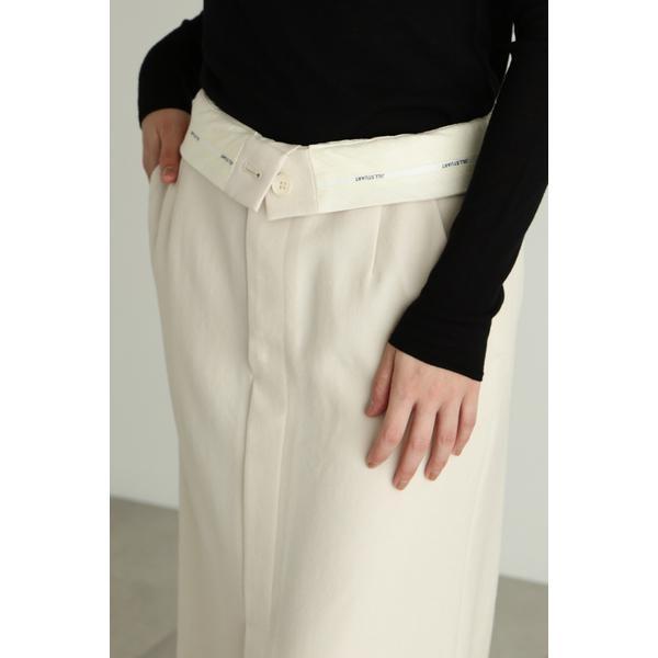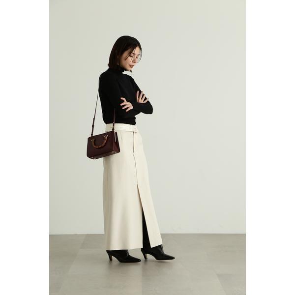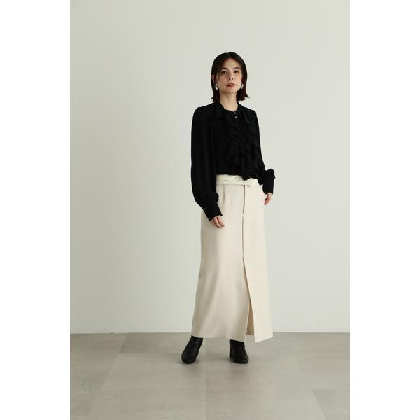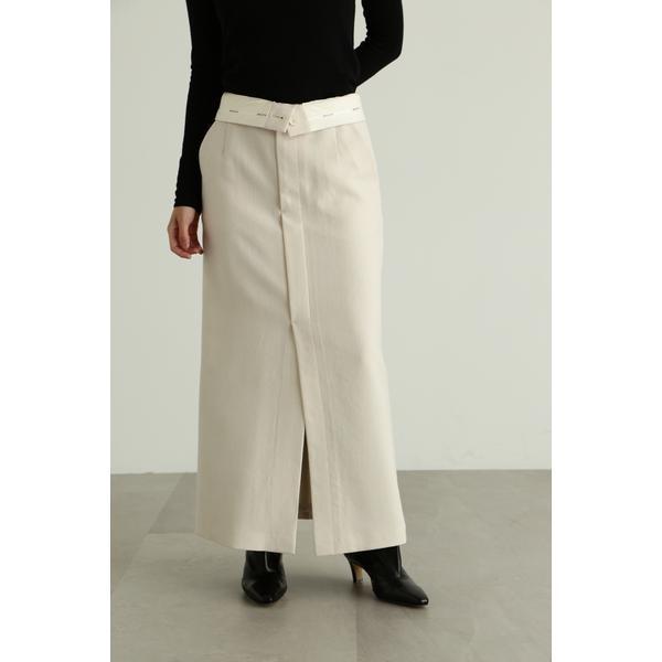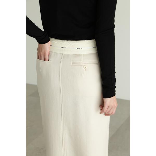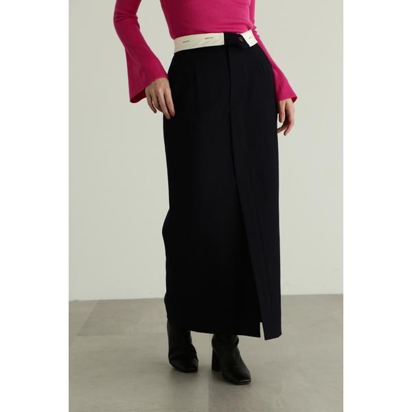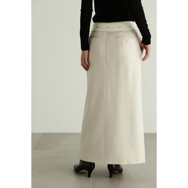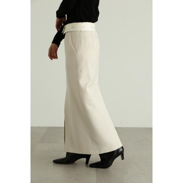 上質なドライタッチのウール混ツイル素材で仕立てたウエストコンシャスなストレートスカートウエストを折り返せば、マーベルト部分のJILL STUARTオリジナルロゴが見える、トレンド感のあるデザイン。前にベンツスリットを入れており、ロング丈ですが重くなりすぎず、ブーツ合わせで足元をちらりと見せるのもお勧めです。同素材のジャケット(商品番号0923250004)とセットアップスタイルでも着用いただけます。