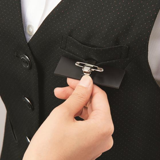 左胸ポケットには名札付け用のホール付き。ペンを差しても名札がジャマになりません。