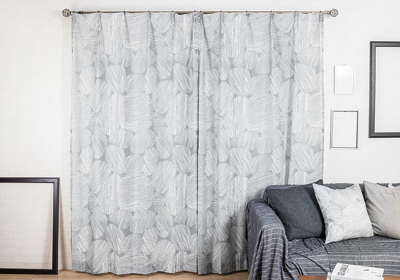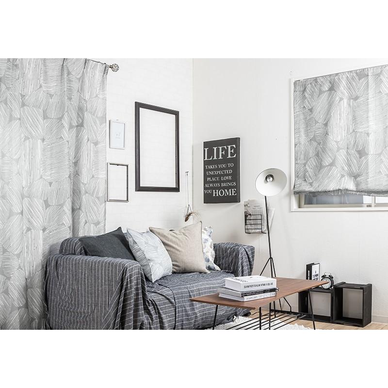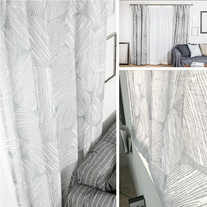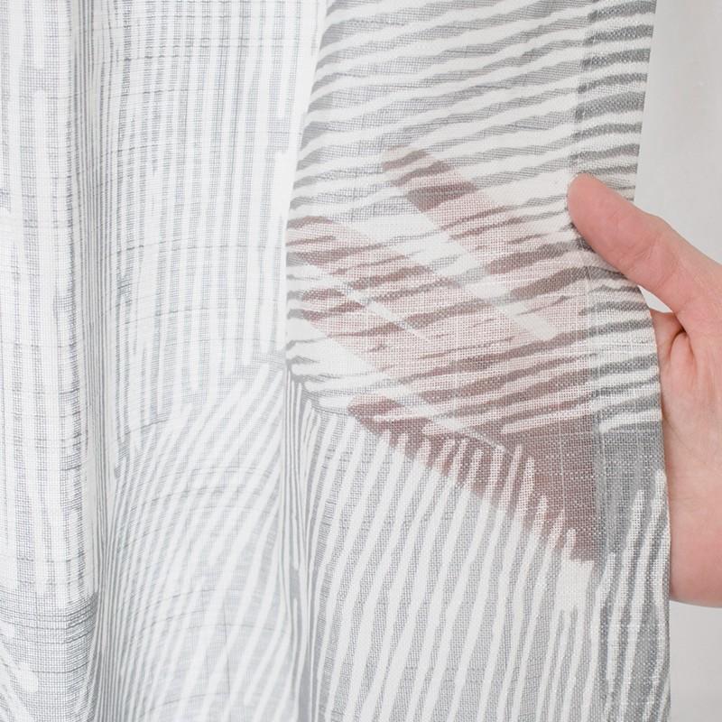 柔らかいグレーが北欧モダンらしいデザインで、リネンライクな軽やかさをポリエステルで表現しているのでリアルなリネンよりもお手入れしやすく、厚地カーテンと合わせてレースカーテンとしてもお使いいただけます。