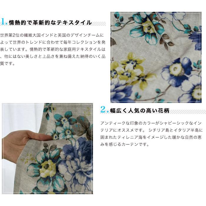 - アンティークな印象のカラーがシャビーシックなインテリアにオススメです。シチリア島とイタリア半島に囲まれたティレニア海をイメージした暖かな自然の恵みを感じるカーテンです。