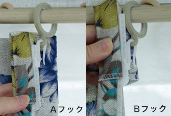 既製品にはBフックが付属し、オーダーサイズはA・Bどちらかをお選びいただけます。
