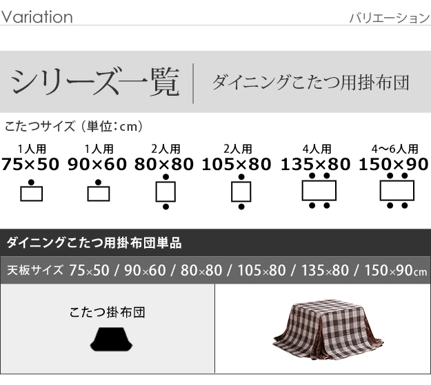 | ダイニングこたつ用掛布団単品 >75x50 >90x60 >80x80 >105x80 >135x80 >150x90 |