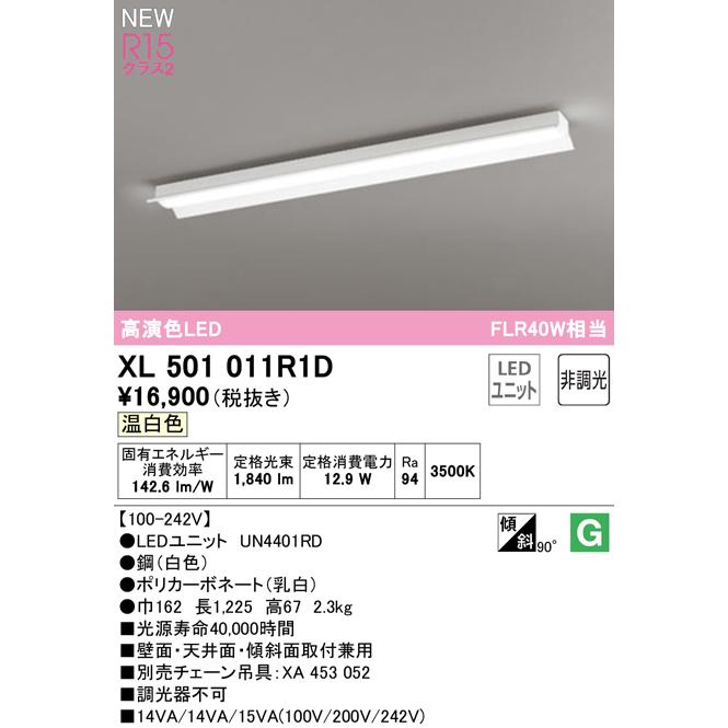 住宅用照明器具 オーデリック ベースライト XL501011R1D 検索用カテゴリ13 【LED照明】 【ベースライト】 【LED直付】 【笠付き】 【温白色】 【非調光】 【40形1灯】●あらゆる空間に対応、高演色R15の光でさらに充実したベースライトの超定番
