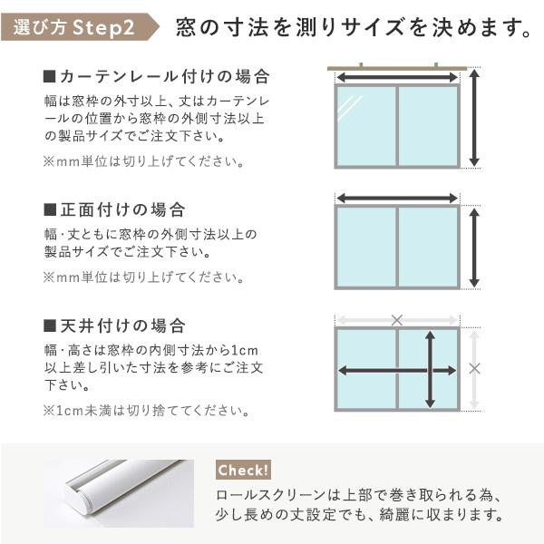 幅・高さは窓枠の内側寸法から1cm以上差し引いた寸法を参考にご注文下さい。