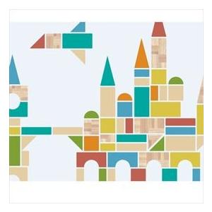 積み木を組み合わせて作った街は、子供部屋のインテリアを彩るのに最適。 壁にできた積み木の街を見ながら、車や家、お城、飛行機などのことを教えてあげても。さまざまなかたちを組み合わせて作られた街にはどんな人たちが暮らしているのでしょうか。いろいろなお話をしながら街の様子をお子様といっしょに想像してみてください。 子供部屋の壁を楽しく彩るウォールステッカーです。