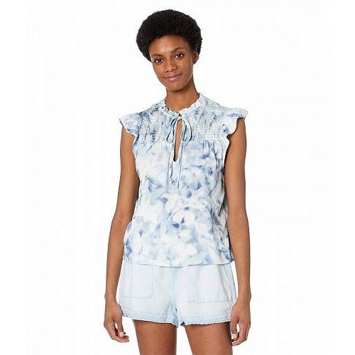 bella dahl レディース 女性用 ファッション ブラウス Sleeveless Smocked Ruffle Top - Indigo Petal Print