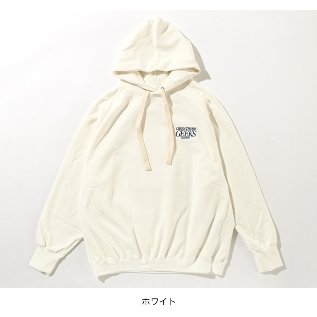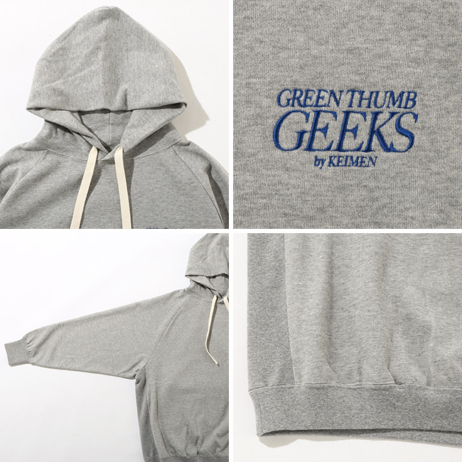 以前制作し、完売しておりました BP Hoodie を再制作し、KEIMEN のテーマであります GREEN THUMB GEEKS を刺繍しました。