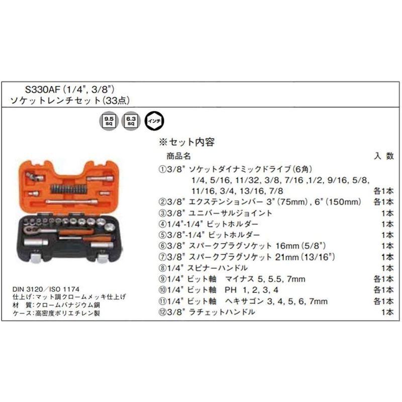 バーコ ソケットレンチセット S330AF 差込角:6.35×9.5mm 34点 1セット