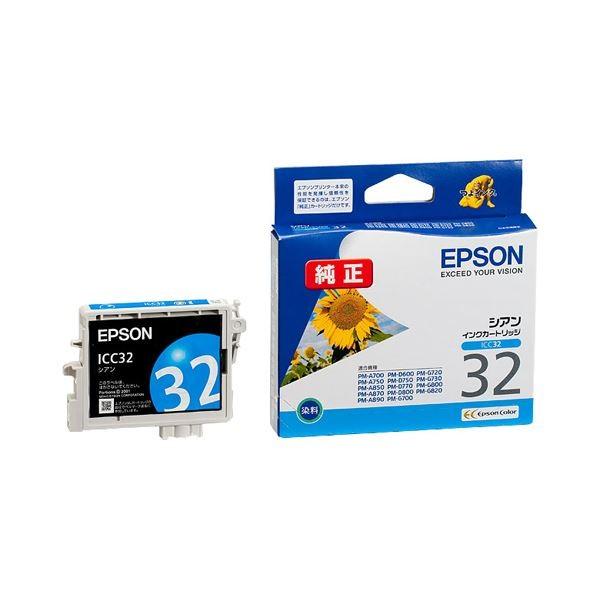 (まとめ) エプソン EPSON インクカートリッジ シアン ICC32 1個 〔×10セット〕