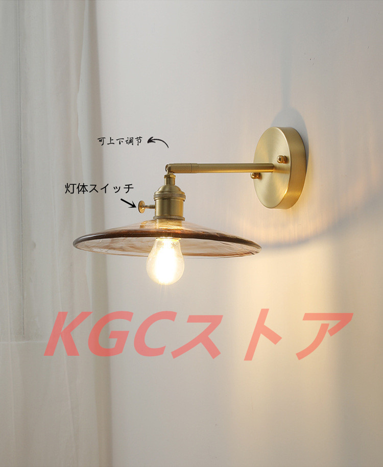 ランプ 灯 照明器具 LED対応 シンプル 北欧 モダン カフェ ヴィンテージ シェード インテリア 間接照明 小型 室内用 店舗用 玄関 廊下 寝室 階段 リビング ダイニング キッチン 書斎 洋室 和室 おすすめ お祝い ギフト贈り物 新築 リフォーム 引っ越し 引き出物 ブラケットライト壁掛け照明 ウォールライト 電気 デザイン 業務用商品説明★ 材質:真鍮+ガラス★ サイズ(約):写真より★ 電球口金:E26/E27 LED対応可、省エネルギー★ 点灯方式:壁スイッチ/タンブラースイッチ/プルスイッチ★ 主な仕様:室内用★ 引っ掛けシーリングは対応しません。★ 取付方法:取り付けにつきまして、表側はビスで簡単に止めれますが、裏側に電線の結線がございますので、電気工事士などの有資格者にお願いして下さい。★ 器具本体を天井や壁面へ直接ビスを打ち込んでしっかりと固定する作業が必要です。★ 安全の為にも、必ず専門の電気工事士の方に取り付けてもらうようにして下さい。★ 実際の商品と写真は異なる場合があります"}