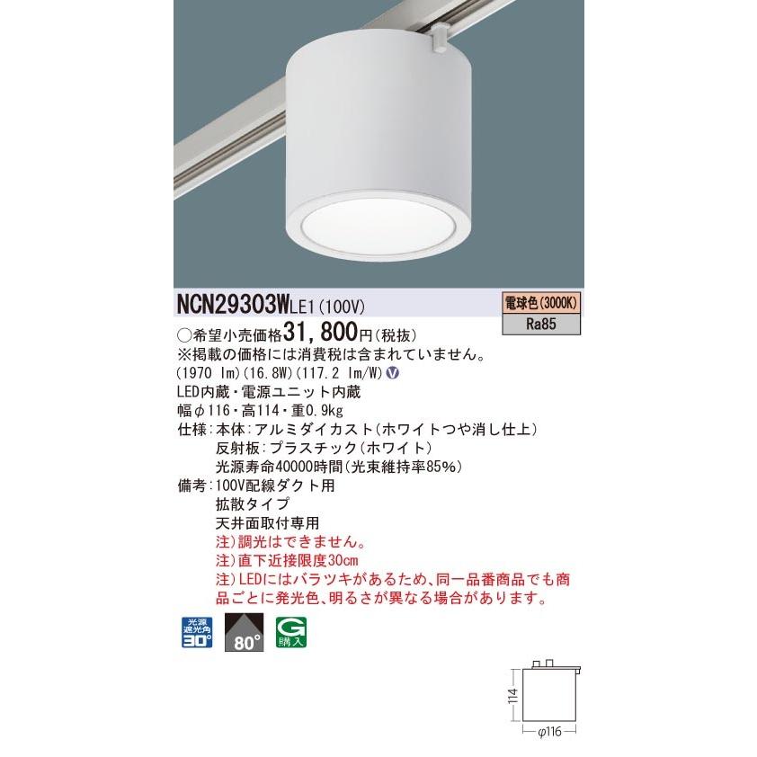 【法人様限定商品】パナソニック NCN29303WLE1 LED小型シーリングライト 天井直付型・配線ダクト取付型 ビーム角80度・拡散 電球色