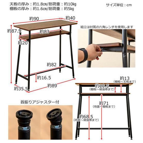 ハイテーブル パソコンデスク 作業台 長机 PC シンプル 棚付き 木製 カウンターテーブル スチール脚 キッチン テーブル