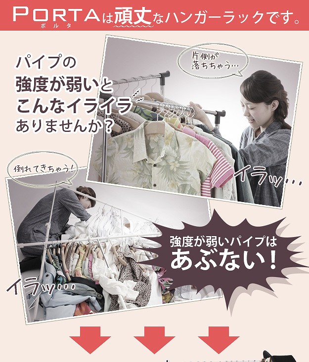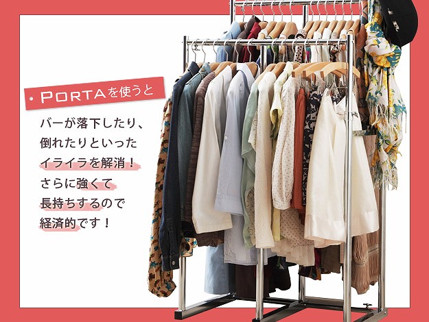 押入れ収納 ハンガーラック パイプハンガー 押入れ伸縮頑丈ハンガー -ポルタ- 半間用 幅60〜100cm 押し入れハンガー スチール シンプル 大容量 洋服掛け