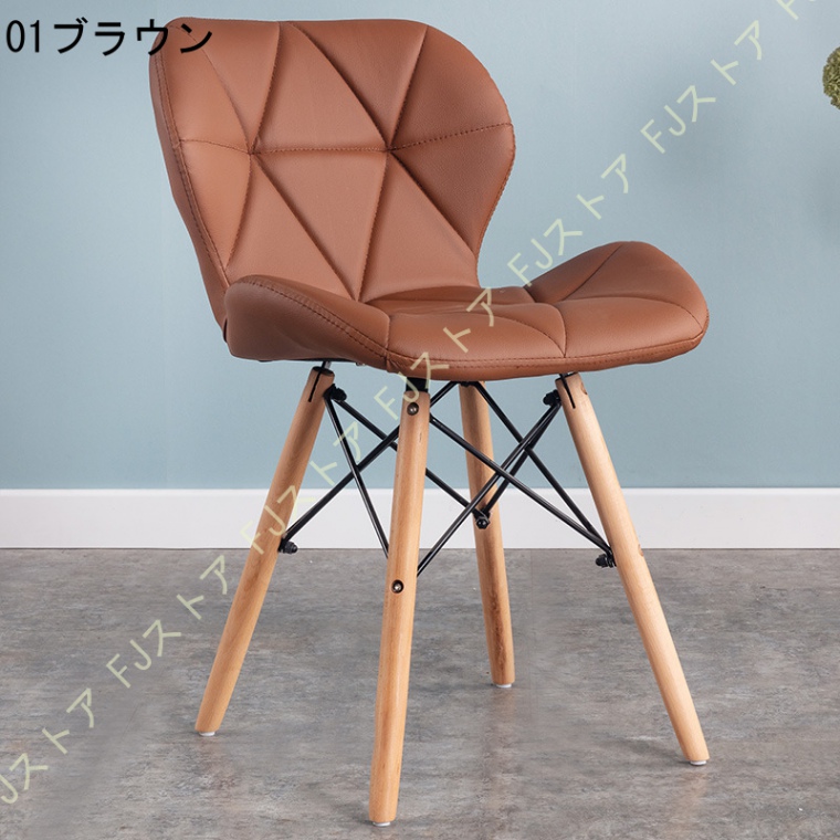 チェア シェルチェア 椅子 いす ダイニングチェア 天然木脚 北欧 おしゃれ リビングチェア 在宅ワーク ブラウン クッション レザータイプ デスクチェア