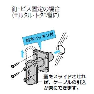 線・同軸ケーブル・フィーダー線用引込口エルボ特長モルタル・トタン壁、ALC・石膏ボード・合板等の引込口貫通に最適です。防水パッキン付ですから、雨水の入る心配はありません。はめ込み式の蓋ですから、電線の引込みが大変ラクです。外観を損なわず、キレイに仕上ります。仕様色:ベージュ防水パッキン付適用:TLチューブ22・VE22取付穴:φ31"}