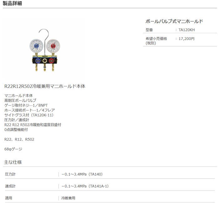 【P】【】【特殊送料商品】TASCOタスコ ボールバルブ式ゲージマニホールド TA120KH [TAS0101]