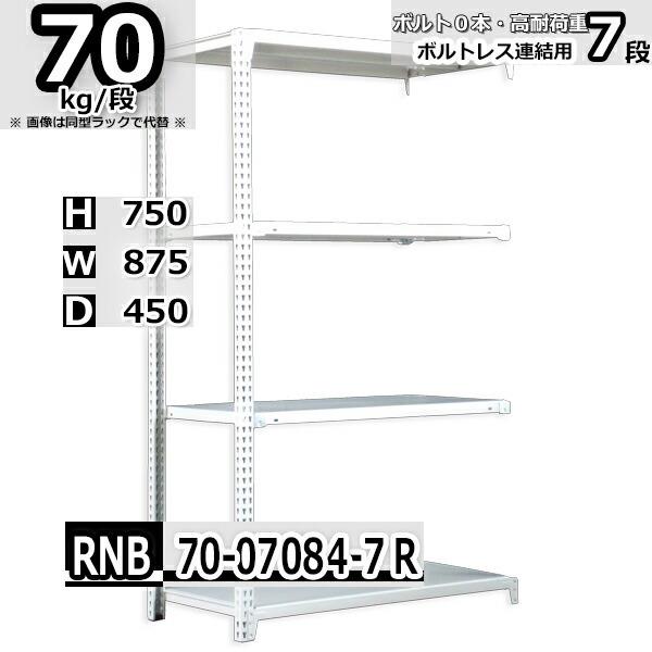 スチールラック 幅87×奥行45×高さ75cm 7段 耐荷重70kg/段 中量棚 業務用 ボルトレス W87×D45×H75cm連結用(支柱2本) スチール棚 収納 棚