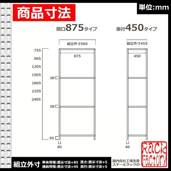 ◇ラック・ファクトリーならではの国内自社工場生産品・組み立てボルト0本。棚受けのツメを支柱に差すだけでらくらく組み立て。・C型支柱の連続穴で、段差連結や耐荷重の異なる連結、下段UPも自由自在。・連結時は支柱を一部共用するため、単体よりも支柱二本分コストダウンに。◇お届けやご注文に関するご注意 ※必ずお読み下さい・大型配送物のため、4t車の場合、業者の支店引取をお願いする場合があります。・お届け先、お荷物の重量によって配送業者が変わります。(業者の指定はできません)・重量物につき、原則建物一階での軒先渡しのみとなります。搬入・設置は行えません。・商業施設の店舗宛ての場合には、搬入が必要になるため配達できない場合があります。・日曜日・祝日の配送は出来ません。時間指定はAM・PM納期の明記のみとなります。・大型配達物のため、北海道・沖縄・離島・一部過疎地の配達には対応しておりません。