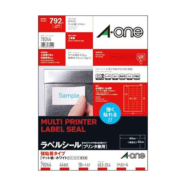 (まとめ) エーワン ラベルシール[プリンタ兼用]強粘着タイプ マット紙・ホワイト A4 44面 48.3×25.4mm 四辺余白付 782441冊(18シート) 〔×10セット〕