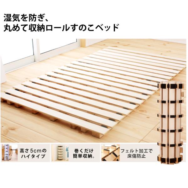 ベッド すのこベッド ロール式 シングル 桐 スノコマット すのこ 折りたたみ 開口従来の2倍確保 通気性アップ 快適 簡単収納 結露防止