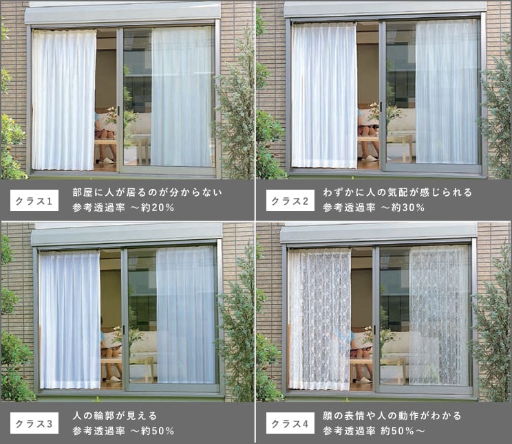 - 人の輪郭が見える程度の透け感なので、程よく視界を遮りたい方におススメです。