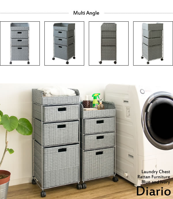 タオルや衣類、洗濯用品などが収納できる軽量なラタンランドリーチェスト『Diario(ディアリオ)』。