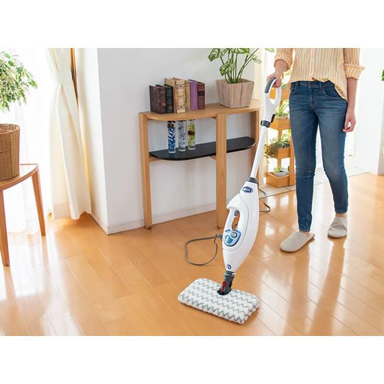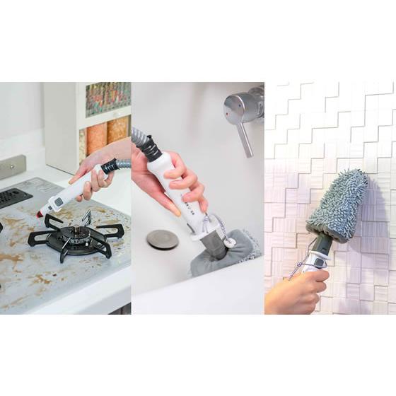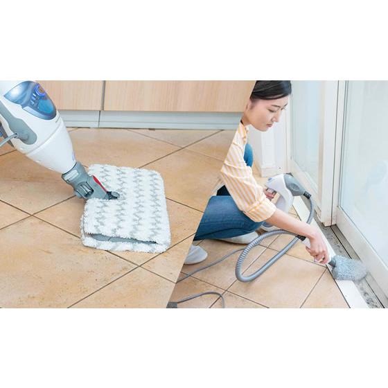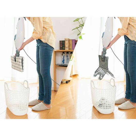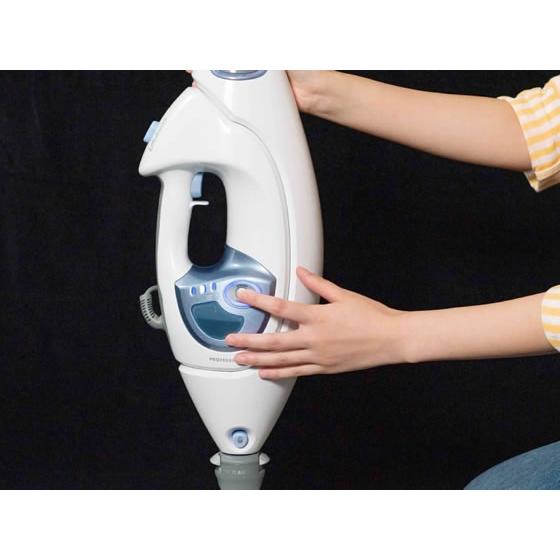 【仕様】掃除機で取れない、キッチンの油汚れや洗面台の水垢、浴室のカビなど多彩にお掃除。 高温のスチームを集中的に噴射。こびりついた汚れをズバッと吹き飛ばします。 汚れの種類や掃除面の材質に合わせて理想的なスチーム量を選べます。 2つの素材からできている水洗い可能な専用パッドで、ほこりと汚れをしっかり吸着します。 パッドに触らずに付けはずしができるので簡単、清潔。 ●色:ホワイト×ブルー●製品サイズ:幅298×奥行246×高さ1118mm●製品重量:4.1kg●消費電力:1200W●ヒートアップ時間:30秒●タンク容量:500ml●スチーム調整:3段階調整●スチーム噴射圧力:Mop 0.7bar / Blast 0.8bar●電源コードの長さ:5m●付属品:専用パッド(ダートグリップ)×2、衣類用スチーマー、小型ポケットツールとパッド(付属ホース付)、注入容器 cl_cl cl_1