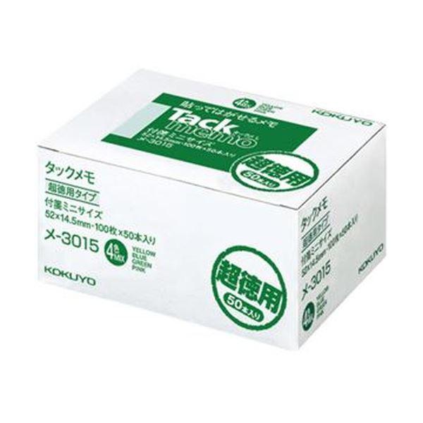 (まとめ)コクヨ タックメモ(超徳用・付箋タイプ)ミニサイズ 52×14.5mm 4色ミックス メ-3015 1パック(50冊)〔×5セット〕