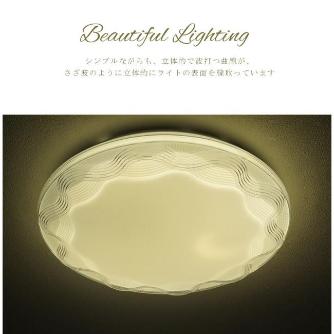 シンプルながらも、立体的で波打つ曲線が、さざ波のように立体的にライトの表面を縁取っています。繊細なデザインが、とても美しくシンプルでオシャレなシーリングライトとなっています。ライト部分は、中央に向かってかすかなふくらみを帯びた優しい曲線を持ち、その周囲を、シェードが波打つような曲線を描きながら縁取っています。シェードには5本のラインが刻まれていて、ドレスを縁取るレースのように見えます。ライト部分の周囲には、シェードの曲線と同じように波打つライン模様が刻まれていて、この模様とシェードの曲線とのハーモニーがエレガントな雰囲気を作り出します。明かりを付けていない時も、シンプルなオブジェのような美しさです。下から見上げると、昼間の空に浮かんだ青白い月のように見えるでしょう。ライトを縁取るシェードが神秘的に見え、未知の惑星のように感じるかもしれません。商品サイズ(cm)直径 50cm Source: LEDタイプ 5000ルーメン 調光可能 色温調節可能(2700K〜5000K) リモコン付き ワイヤレス方式材質 シェード:アクリルDesigned in USA Made in China ノーブルスパーク社製 一年保証シンプルながらも、立体的で波打つ曲線が、さざ波のように立体的にライトの表面を縁取っています。