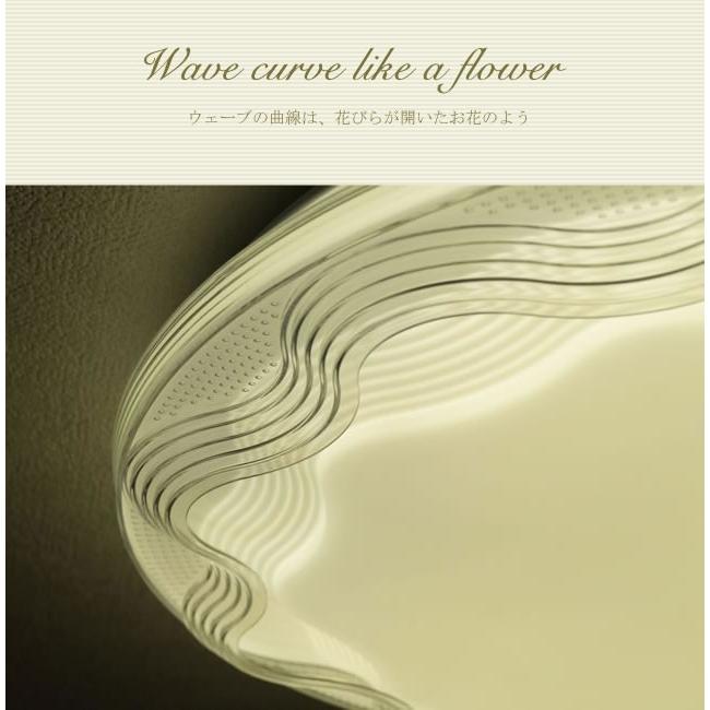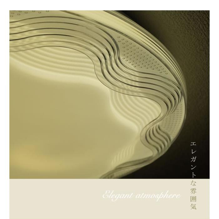 ライト部分は、中央に向かってかすかなふくらみを帯びた優しい曲線を持ち、その周囲を、シェードが波打つような曲線を描きながら縁取っています。