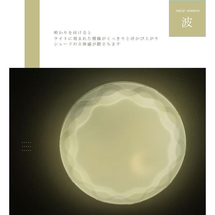 ライト部分の周囲には、シェードの曲線と同じように波打つライン模様が刻まれていて、この模様とシェードの曲線とのハーモニーがエレガントな雰囲気を作り出します。