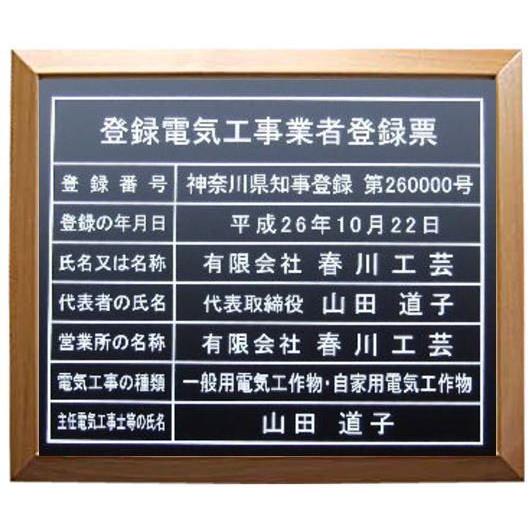 登録電気工事業者登録票 木地額入り・板面はブラック/登録電気工事業者登録票 お洒落な 登録電気工事業者登録票 額入 登録電気工事業者登録票