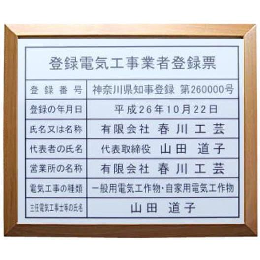 登録電気工事業者登録票 木地額入り・板面はホワイト/登録電気工事業者登録票 お洒落な 登録電気工事業者登録票 額入 登録電気工事業者登録票