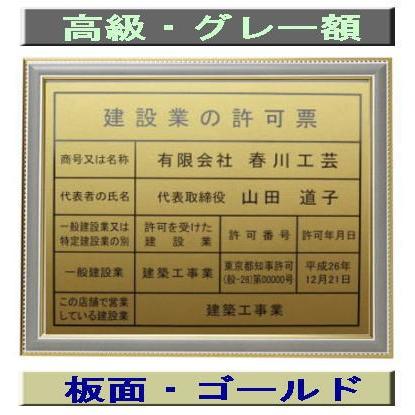 建設業の許可票【本物のコールド以上の輝き】グレー額入り・板面はゴールドペーパー /事務所用 安値 標識 表示プレート 掲示板 法定看板