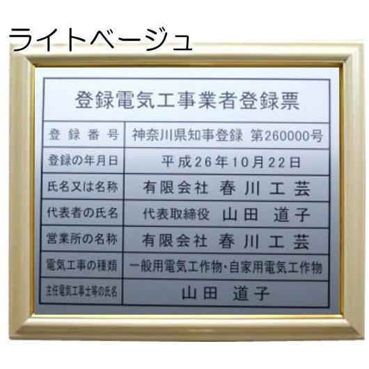 登録電気工事業者登録票 ライトベージュ額入り・板面はシルバー /登録電気工事業者登録票 お洒落な 登録電気工事業者登録票 額入 登録電気工事業者登録票