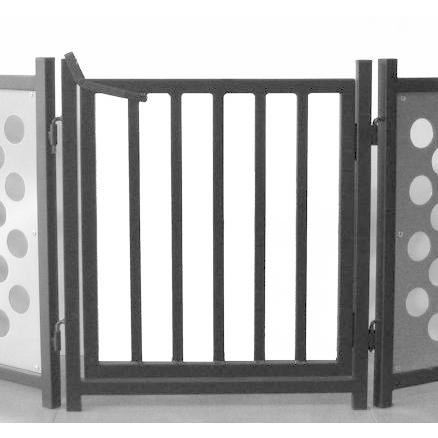 こちらは通り抜けできる柵1枚になっています。お家の間口の幅に合わせて自分だけのオリジナルで長いゲートにしたり、6面でサークルにしたりと自由に設計できます。