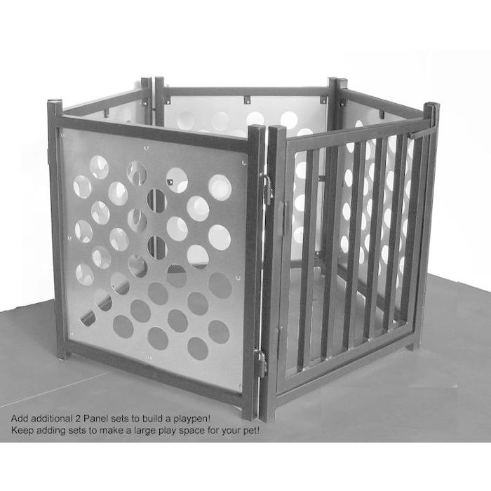 シカゴからデザインがかわいいペット用品が登場!わんちゃんが部屋から部屋へ移動できないようにするドッグゲートです。フリースタンディングでポルカドットスタンディングゲート(穴の開いたパネル)と合わせて何個も接続できるゲートです。