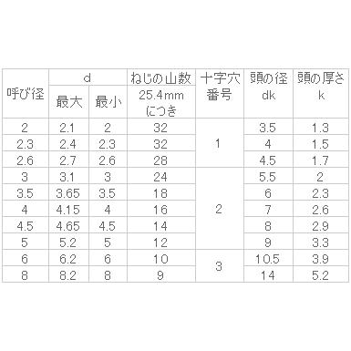 ■説明:相手部材のタップ立てが不要で、ねじをきりながら締付けることが出来ます。ねじ部の先端がとがっていて木工材などの場合は下穴をあけずに締め付ける事も可能ですが相手部材が割れる場合もございますので基本的に下穴をあけて締め付けを行います。■規格:JIS B1122に基づいています。■材質:鉄 ■処理:ニッケルめっき■寸法の呼び方:(呼び径)x(長さL)"} ■規格:JIS B1122に基づいています。