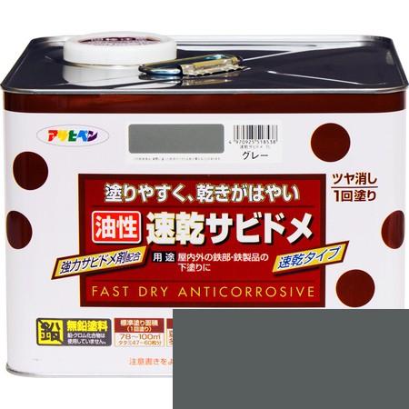 181112鉄部や鉄製品の下塗りに用いて、長期間サビの発生を防ぎます。乾きがはやく、ハケ塗りしやすい合成樹脂系のサビドメペイントです。有害な鉛系サビドメ剤は一切使用していないので安全です。消防法上の非危険物。【仕様】●用途:鉄製の扉・門扉・鉄格子・鉄柵・シャッター・パイプ・機械器具・農機具等、屋内外の鉄部・鉄製品のサビ止め。●一般用さび止め塗料●容量:7L●カラー:グレー●標準塗り面積(1回塗り):78〜100m2(タタミ47〜60枚分)●乾燥時間:夏期 3〜5時間、冬期 10〜15時間181112