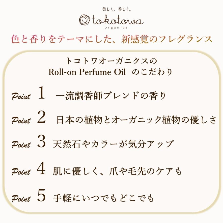 tokotowa organics トコトワオーガニクス公式ショップ自然素材100%、天然香料-エッセンシャルオイルのみの、アロマのいい匂いの女性用オーガニック香水、肌にやさしいオーガニックロールオン5本フルセット。ネイルオイルや毛先のケアも。敏感肌の方、お子様やペットがいる方も安心。ロールオンパフュームオイル●ピンク-愛情&永遠-ローズと日本の月桃の香り大自然からの花々とローズの花束が溢れる優雅な香り●イエロー-成功&明確-日本の柚子とジュニパーの香りフレッシュな果実がイキイキと輝く、爽やかな柑橘系の香り●ライトブルー-リラックス&調和-日本の橙とバニラの香り柑橘の軽やかさとバニラの甘さが調和した優美な香り●バイオレット-浄化&夢-日本の黒文字とラベンダーの香り清々しさとフローラルさを持つ、限りなく透明な香り●ホワイト-希望&開花-ネロリとジャスミン、日本の高野槇の香り白い花々が溢れる、エアリーでフローラルな香り誕生日 結婚祝い 新生活応援 母の日 ホワイトデー クリスマス 出産祝い お返し 入学のギフトやプレゼントに女性 レディースに人気です。