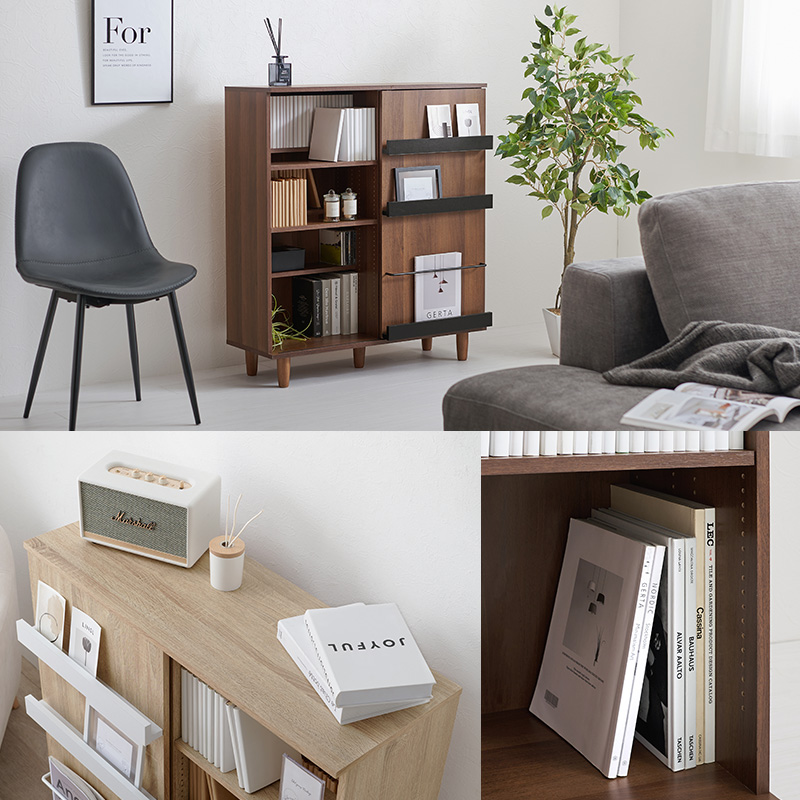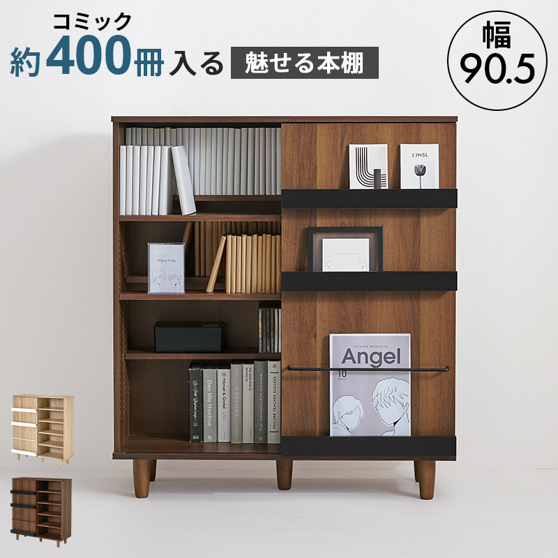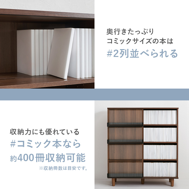 本棚 コミックラック ブックシェルフ おしゃれ スライド扉 可動棚 脚付き 大容量 スリム ディスプレイ 漫画収納 薄型 シンプル