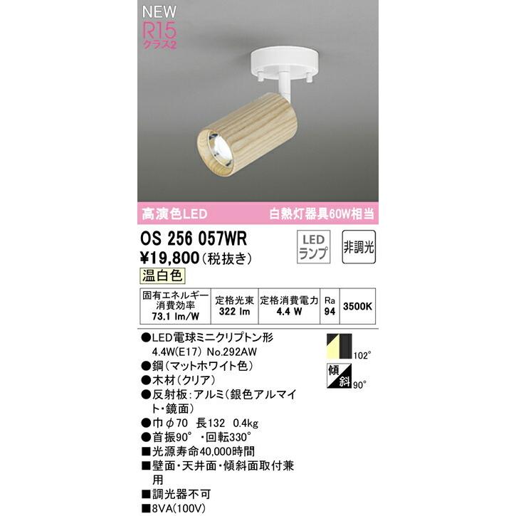 【決済・後払い決済】 高演色LED 白熱灯器具60W相当 OS256057WR 温白色 消費電力4.4W Ra94 ●LED電球ミニクリプトン形 4.4W(E17) No.292AW ●(マットホワイト色)●木材(クリア)●反射板:アルミ(銀色アルマイト・鏡面) ●巾φ70 長132 0.4kg ■光源寿命40,000時間 ■壁面・天井面・傾斜面取付兼用 ■調光器 90° 傾斜天井対応 その他 タスク_拡散メーカーへのお問い合わせはコチラ →