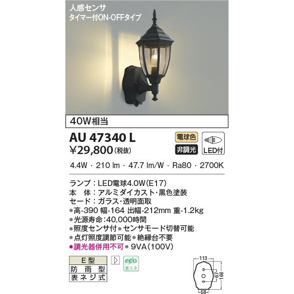 LED照明 最新モデルコイズミ照明 AU47340L 防雨型ブラケット