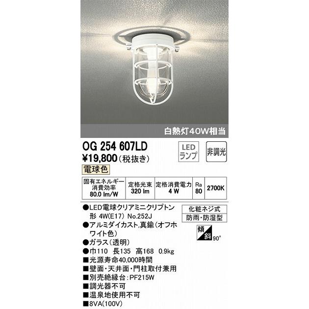 オーデリック ブラケットライト 【OG 254 607LD】ポーチライト 玄関照明 防雨防湿型【OG254607LD】【メーカー取り寄せ】【決済・後払い決済】【純正品】