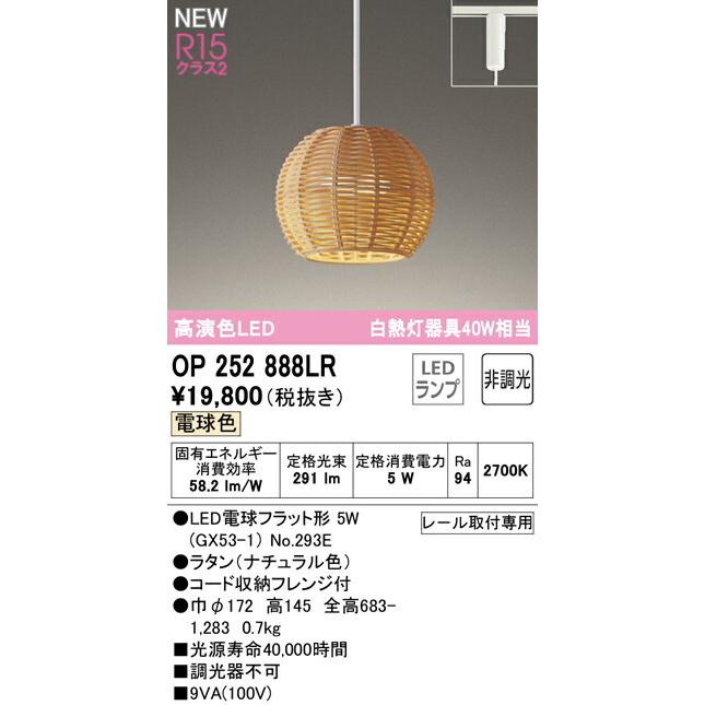 【決済・後払い決済】 高演色LED 白熱灯器具40W相当 OP252888LR 電球色 消費電力5W Ra94 ●LED電球フラット形 5W(GX53-1) No.293E ●タン(ナチュラル色) ●コード収納フレンジ付 ●巾φ172 高145 全高683-1,283 0.7kg ■光源寿命40,000時間 ■調光器 レ-ル取付専用 その他メーカーへのお問い合わせはコチラ →